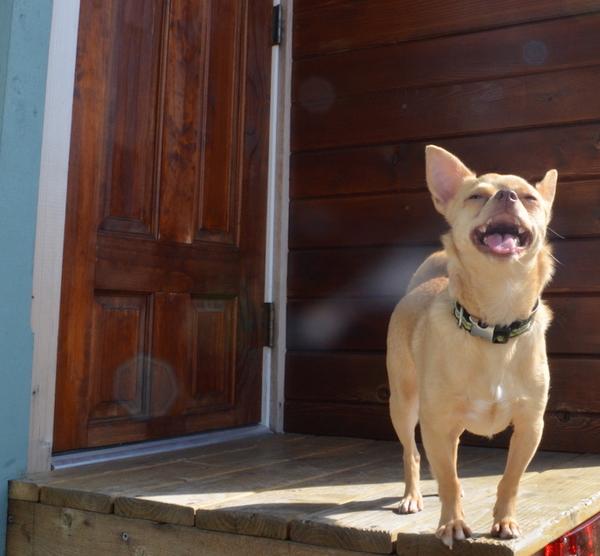 Lobster totally gets the tiny thing. He sits very nice in the house, and only seems interested in his two happy places; on the bench or on the mat by the door when the bench is taken by those two very rude people who don’t seem to understand that it is in fact, his.